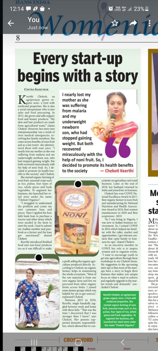 Media coverage of CHEKORGANICS has further amplified its reach, showcasing the effectiveness of products such as Noni Fruit Juice and Noni Herbal Hair Oil. Various health and wellness publications have featured the brand, emphasizing its role in promoting holistic health and enhancing beauty through natural means.
